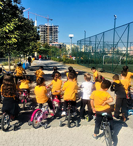 Yazdan kalma güneşli, güzel bir günü değerlendirdik. Bisikletlerimizi, scooterlarımızı kapıp okulumuza geldik. Trafikte bisikletin yeri nedir? Hangi kurallar